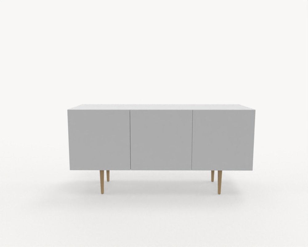 Det vitlackade skåpet vilar på stilrena ben i polerade ekben.